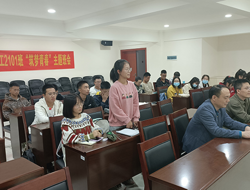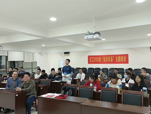 化学工程与工艺2101班于曾宪梓楼205室召开以“筑梦青春”为主题的班会,学院副院长陈四海老师与化工2101班班主任王少飞老师出席班会,与同学们亲切交谈并寄予厚望。化工2101班全体同学参会,本次班会由班长浣海山主持。