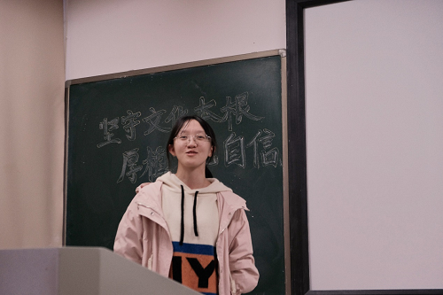 本次团日活动中,“飞花令”和“你划我猜”这两个游戏,让同学们在积极参与本次活动的同时,重温了许多诗词与成语文化典故。在这堂课上,它们不再是死板的学习内容,而是早已根植在同学们内心的深厚的中国文化,是体现在外在的文化修养,更是让同学们有意愿有底气去传承与弘扬中华民族优秀文化的文化自信。