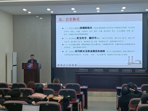 12月21日晚,由潘刚峰老师为大家进行第一项培训内容——公文写作,旨在提高各位学生干部的公文写作能力,从而能够正确传达上级,学校的政策及规定。首先,潘书记介绍了什么是公文,公文分为哪些种类以及公文写作的意义。接着,潘书记通过介绍学生干部在公文写作中的困境来引入公文写作的格式以及公文写作应该围绕的十大中心原则,向各位同学详细讲述了公文写作的相关内容。相信通过此次培训,各位学生干部的公文写作能力都有所提升,也为后续的学生工作奠定了良好的基础,同时也将学院今后的学生工作推向更高层次。