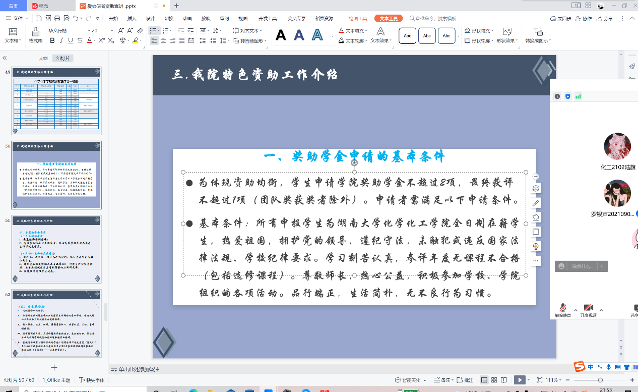 化学工程与工艺2102班于2022年5月16日下午17:00-18:00开展了以“以心筑梦,以爱铸人”为主题的资助政策宣传班会。此次班会以腾讯会议的方式展开,由 哔咔官网