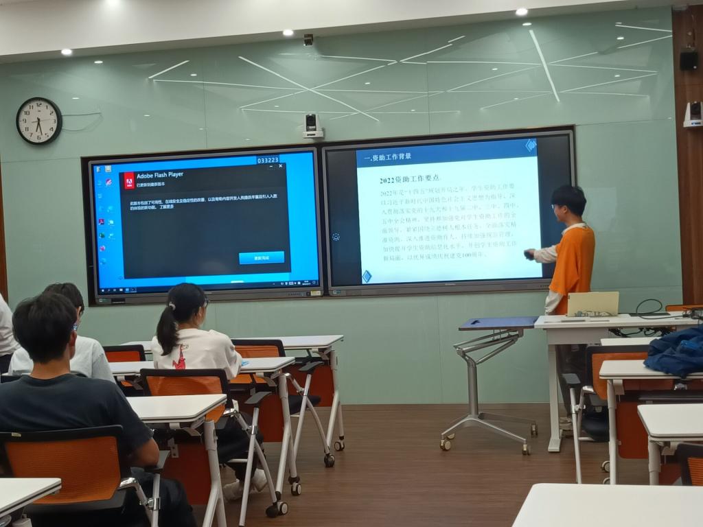 特色资助工作介绍进行了详细的讲解,学院的特色资助工作主要包括学生资助管理中心、获奖获助学生团队建设和公益岗志愿服务活动等,学院深入推进资助育人,给同学们提供了温暖与帮助。在班会结尾,晏佳文鼓励同学们努力学习,学会感恩,用自己的努力回馈国家和学校的帮助。