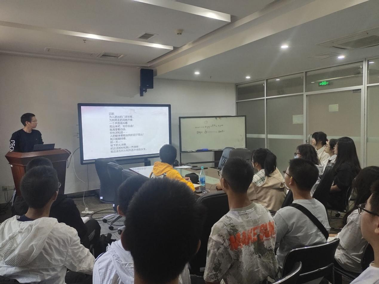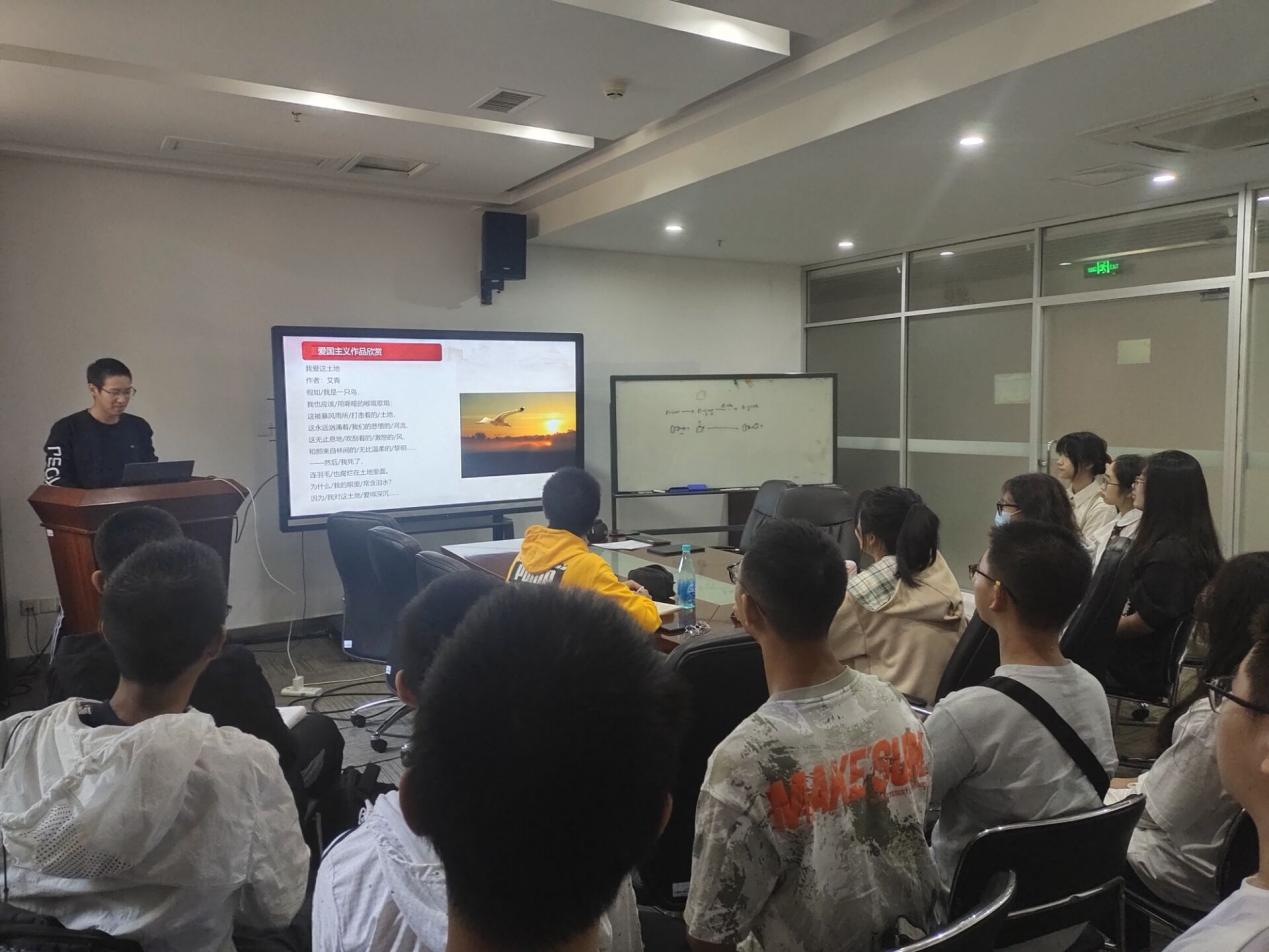 其次,任彦霖同学带领成员欣赏经典爱国主义作品《我爱这土地》与《囚歌》,旨在让成员了解中国历史,自觉延续中华文化基因,激发成员强烈的爱国主义精神,深入体会先辈们深沉的爱国主义精神。