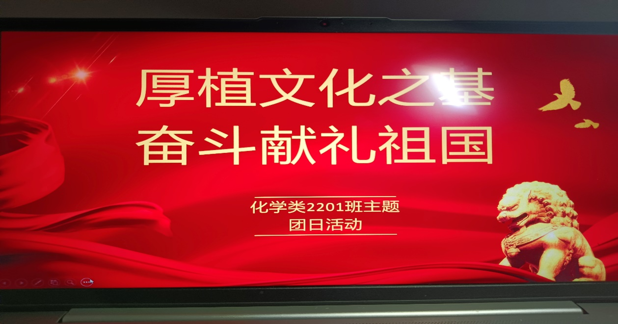 2022年10月20日14:30,化学类2201班在腾讯会议开展了主题为“厚植文化之基,奋斗献礼祖国在”的团日活动。尽管活动以线上的形式进行,但同学们都能够积极参与,热烈讨论,活动反响良好。