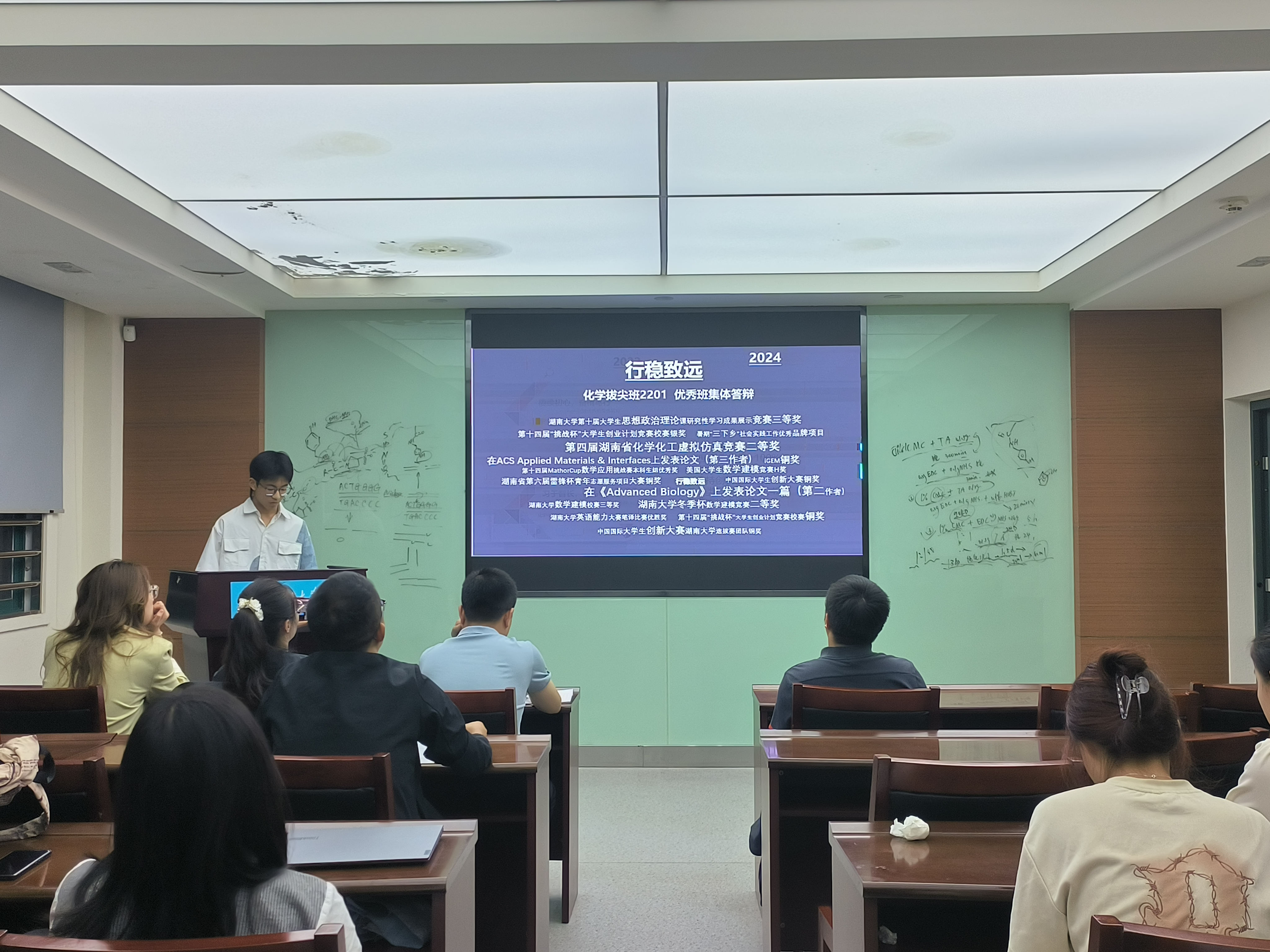 本科优秀班集体答辩在新化工楼B106顺利举行。化学拔尖班2201班班主任朱智强、化工2303班班主任杨坤及全体本科生辅导员参与。