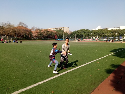 冬日的早上,长沙的室外气温已经接近零摄氏度。化工院飞盘队的队员们在早上七点就在体育场集合,开始进行比赛前的热身准备活动。在赛前,主队长邓弘立同学再三向队员们强调安全问题不能忽视。