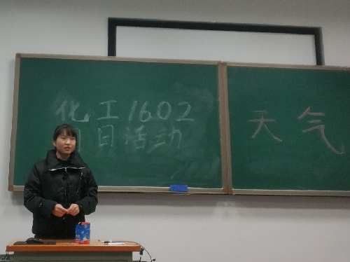 化学工程与工艺1602班全体同学在团支书代永丽的组织下于中楼107教室举办了以“化学文化节”为主题,制作五彩多变天气瓶的团日活动。
