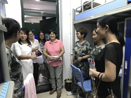 随后张院长、王书记、范书记与各班班导师分别前往男女生宿舍进行慰问,了解新生的家庭和入学情况。在交谈中,院领导了解到新生大多来自全国不同的省市。在询问了新生对学校的印象后,老师希望同学们能够尽快融入新的学习环境,学会有方法地去学习,做好大学四年的学习规划,树立长远目标;生活在同一个宿舍的同学要互相学习、互相帮助;有问题及时反映,注意人身安全。王书记强调,学校相关部门要密切关注并排查寝室中的安全隐患,对新同学提出的意见与建议及时回应、高效处理。