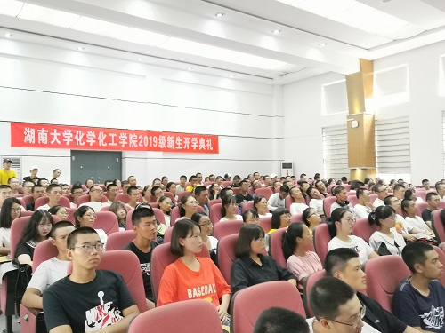 2019级本科生开学典礼在院报告厅成功召开。学院党委书记王玉枝教授、院长张晓兵教授、党委副书记范媛吉老师、副院长李永军教授、梁志武教授、崔坤在老师,院长助理汪秋安老师、院长助理赵敬哲老师,化工系主任罗潇教授、实验中心主任郭栋才教授以及2019级全体班主任和学工办全体老师受邀出席,19级新生辅导员夏忠诚老师主持此次典礼。