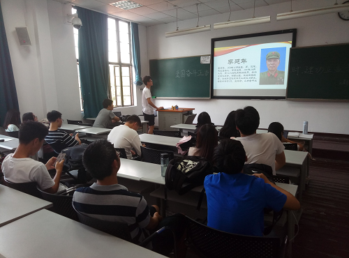 之后以寝室为单位,各派出一人与大家分享自己所了解的祖国建设者的感人事迹。最先上台的是柯学同学,他声情并茂的向同学们讲述了关于“最美奋斗者”申纪兰的故事。随后,其他同学还分别讲述了药学家屠呦呦、袁隆平院士、于敏院士等人的事迹,大家为他们无私奉献的精神所感动,也为祖国能拥有这样杰出优秀的人才而自豪。
