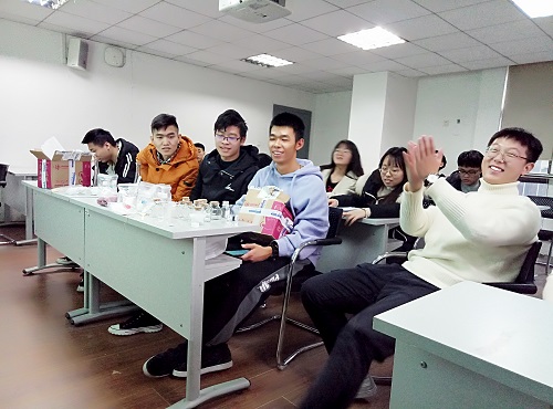 由于近期的考试较多的,为了缓解同学们的压力,20191130 日下午,化工703 班全体同学在综合楼507举办了以“chem is try ”为主题的团日活动。