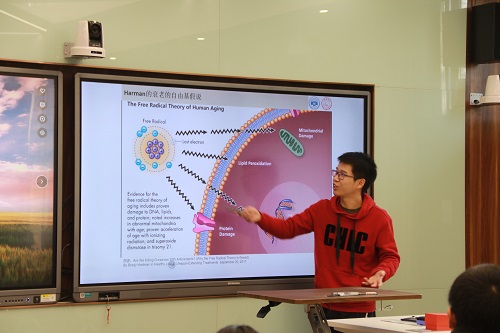 刘云涛同学以自己入学以来对生命科学的学习研究作了人类衰老机制研究报告的分享。