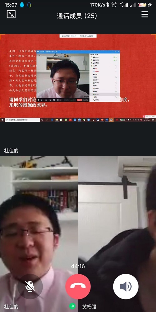 本次线上主题班会由辅导员,班主任和班委组织落实,主要围绕疫情防控,爱国主义,传染病防控等各方面,紧密结合当下国内形势,习近平总书记重要讲话,当下疫情防控等,以班长主讲,班级同学线上交流等方式展开讨论,班会开始,班长杜佳俊简要阐述了习近平总书记关于疫情防控的重要指示精神,即疫情就是命令,防控就是责任,中国32个省援鄂医疗队在国家的危难时刻,挺身而出,把国家大义置于个人安危之上,在一片赞叹声中,会议进入了下一环节,学习新时代爱国主义教育,坚定爱国力行的使命责任,同学们一起观看了学习强国平台发布的《“云”端筑梦》的MV,聚焦疫情期间在家上学的追梦人和无私奉献的筑梦者,疫情期间,各地教育部门因地制宜组织教师开展线上教学活动,一位名叫吴远升的老师,身处偏远的山区,网络不通畅,为了顺利展开教学活动,吴老师每天都不得不拿着纸,笔和手机,去屋子后面的山坡上寻找信号,连上视频,他的学生们得知后,都流下了滚烫的泪水。接下来,杜佳俊同学进行了传染病防控知识宣传教育,结合当下疫情形势,列举了疫情爆发以后一段时间逐渐下降的全国确诊病例的数据,旨在表明中国在疫情防控中采取措施的正确性以及民众个人卫生意识对疫情控制的重要作用,并分别从个人防护,居家防护,返校防护三大方面详尽地阐述了每个人在传染病防控中应该注意的卫生事项,并特别强调了同学们务必要每天要按时遵守学校开展的每日健康打卡活动。会议逐渐接近尾声,班长杜佳俊同学利用腾讯会议开启了自由发言模式,主要为对当下时事政治的探讨,中国为各国的防疫工作设立了新标杆,能取得如此显著的成果,与中国的社会主义制度优势是密不可分的,同学们就中西方对待疫情的不同态度和措施展开了激烈的讨论,班主任黄杨强老师和辅导员宋天棋老师都发表了自己的看法,这其中涉及到各个国家文化,制度,医疗体系等深层次的问题,同学们在激烈的讨论中增强了对祖国的归属感和认同感。
