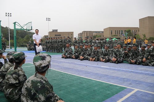 化学2003班班导师李昆老师,2004班班导师赵子龙老师和化工2003班班导师彭桑珊老师到军训场看望自己班上的同学。