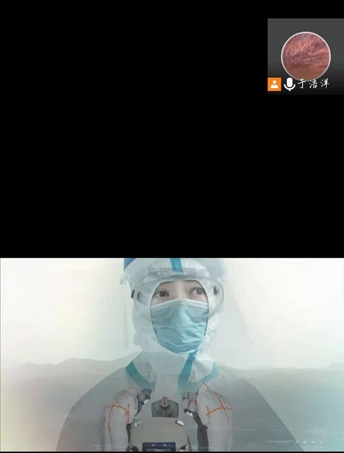 视频结束,与我一起观看的同学有的已眼角湿润,班长于浩洋接着向我们展示了疫情期间及疫情后期社会各界对抗疫英雄的致敬,高楼显示屏上中国红的字体“白衣天使”,街边的条幅,网上的句句加油,满满敬意,更让我们体会到抗疫英雄们的伟大。随后,几位同学在线上讲述了自己在疫情中身边的抗疫英雄事迹,社区工作者,志愿“摆渡人”等等,并对此表达了他们的感动与钦佩。