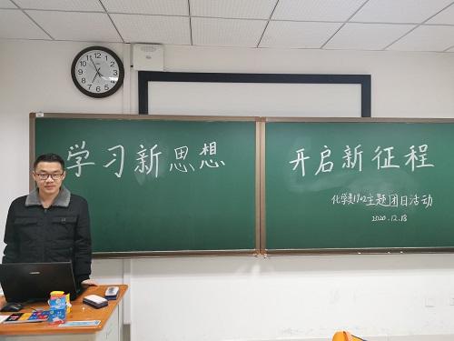 为深入学习党的十九届五中全会精神,进一步教育引导广大共青团员全面了解我国进入新发展阶段的重大意义和重要特征,激励广大学子爱国之意志。2020年12月18日,化学类1902班于研究生楼D306开展了 “学习新思想,开启新征程”主题团日活动。本次团日活动由团支书陈思卓主持。
