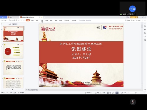 通过腾讯会议举行了化工院第一场学生助理线上培训。本次培训由化工院本科2020级辅导员宋天棋老师对党团建设进行讲解说明。