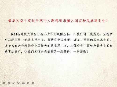 “最美的奋斗莫过于把个人理想追求融入国家和民族事业中。”宋天棋老师在党团建设培训的最后以他最喜欢的一句话结束了本次党团建设的培训。
