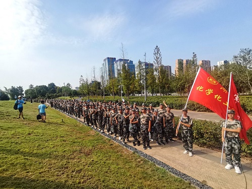 的军训增加了拉练项目,通过拉练,同学们之间的凝聚力更强了,也更深刻地体会到了军训的精神,完成了体质与精神上的双重蜕变,用实际行动诠释了“勇者无敌,谁与争锋”的化工精神。