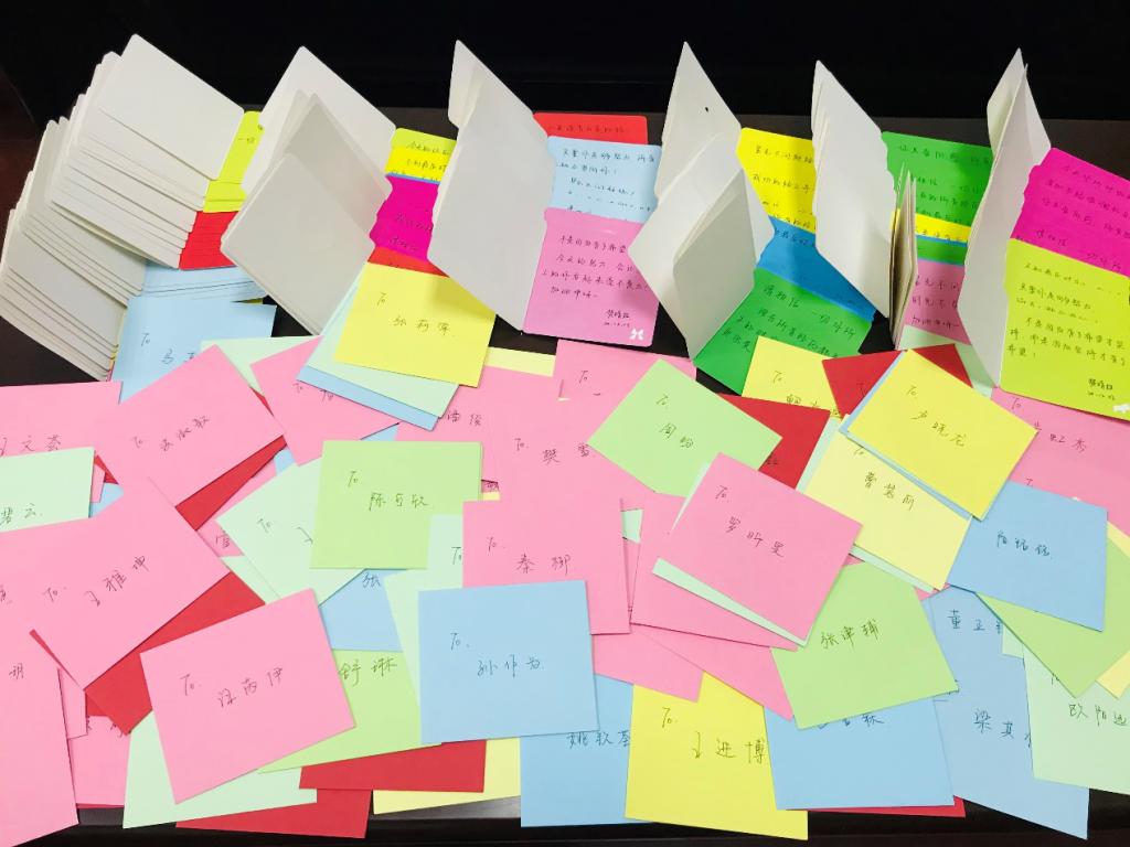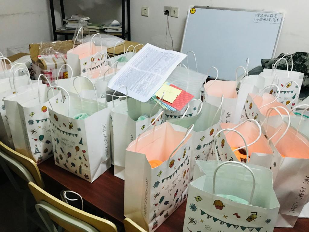 在11月中旬,17级辅导员王楚晴和17级年级会同学就已经开始筹备此次活动,从主题的确定,到挑选礼物、制作贺卡再到精心包装。一条条可爱的卡通毛毯,是冬日里给予学子奋力前行路上的温暖;一句句辅导员亲笔写下的祝福,是学院老师对学子的热诚关怀和殷切期盼。