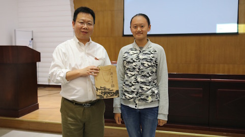 校徽。十年树木,百年树人。插柳之恩,孰能忘怀。化工院这片沃土使石俊峰先生从小树苗成长为参天大树,石先生这番乌鸦反哺,羊羔跪乳的行为深深地打动了每一个与会人员,师生们都不约而同地起立鼓掌,雷鸣般的掌声盘旋在整个会场的上空。典礼接下来是由郭栋才教授宣读表彰决定,获得“龙蟠科技”奖学金的优秀学生井然有序地上台领奖,蒋院长、王书记和石俊峰教授分别给获奖学生颁发了获奖证书。获奖学生代表2013级孙震同学同时也表达了他获得奖学金的喜悦和对石俊峰教授设立奖学金来鼓舞学生努力学习的感谢。他表示,在今后的学习与工作中必将更加努力,去争取更好的成绩。