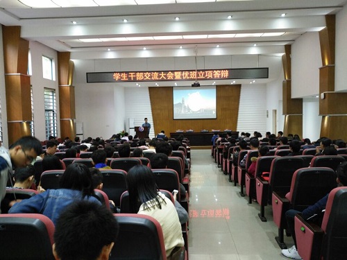 学生干部交流大会暨优班立项答辩在化工院报告厅举行,各年级辅导员均出席了此次活动。