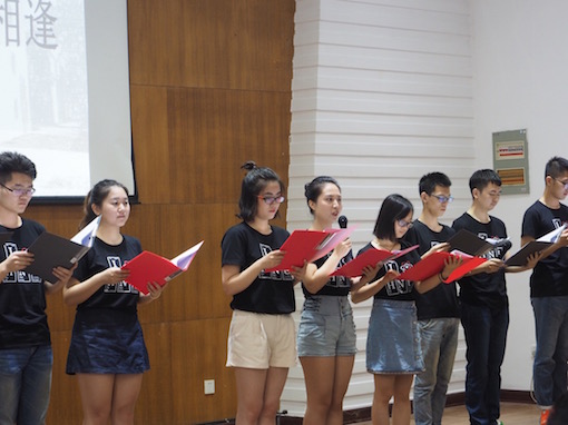 谢师恩环节过后,各班代表接受了14级学弟学妹赠送的明信片,并且15级的孙洋同学上台致辞表达了对学长学姐们的感谢之情。