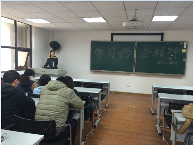 应用化学1201班于2015年3月17日,在综合楼407教室召开了关于“学习两会精神”的主题班会。班会向学们传达了最新召开的“两会”的精神,并深入地探讨了同学们各自对于两会的认识和理解。