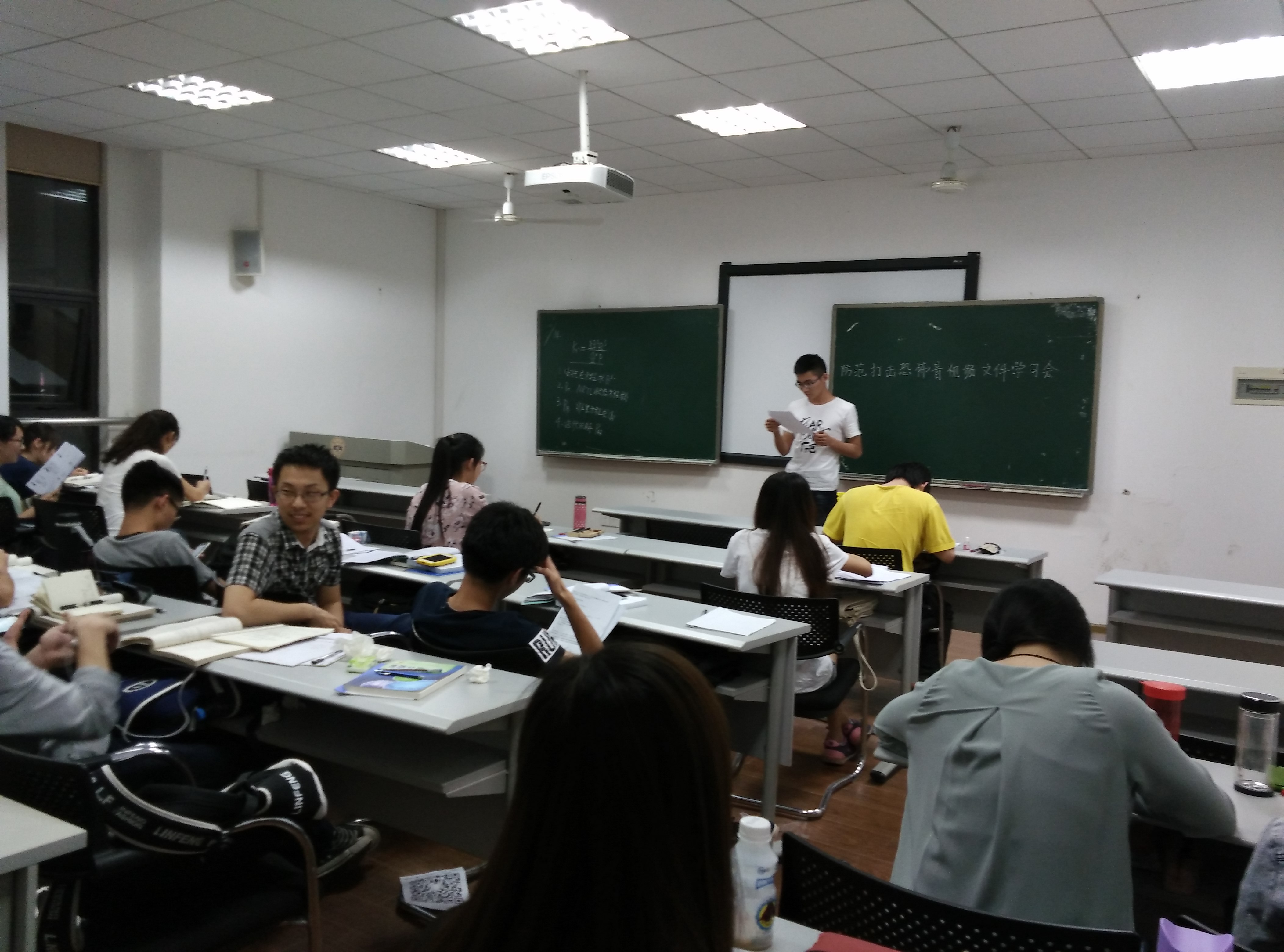 2016年5月28日星期六,化工1301班团支部举办了一场防范打击恐怖主义的教育宣讲班会,这是化工1301班同学对防范恐怖暴力活动的学习,也是同学们对宗教活动和治安管理相关法律的一次学习。