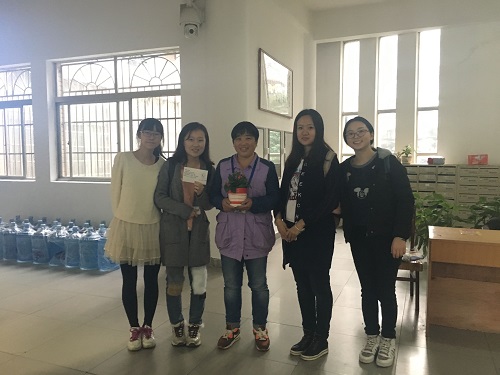 不管礼物贵重与否,这都是同学们的心意,化学1403班全体以这种方式对他们表达了感谢之情。师傅阿姨们收到礼物那一刻幸福的笑脸,为这个感恩周添上了一份暖意。希望这份温暖能延续下去,这就需要更多的同学对这些长久以来默默奉献的人给予更多的关怀。