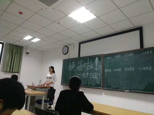 在简单投票统计活动之后,各新班委也尘埃落定。班导师刘志刚首先对他们表达了祝贺,同时也希望他们今后在完成自己学习任务的基础之上,能够承担起支撑化学1502班更好前行的责任与使命。刘老师语重心长地向同学们叙述了在我国改革开放新时期,作为先锋知识分子的当代大学生的历史使命与社会责任,激励全体同学以此为契机,更加发愤图强,脚踏实地,为自己为社会的发展贡献自己的力量。