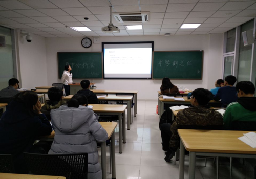 化学1602班全体同学在研究生楼A107,举行了期中分析总结的班会。本次活动由团支书蔡润晖同学主持,活动内容主要包括期中成绩分析和寝风建设情况总结。班导师王青老师也出席了此次班会。