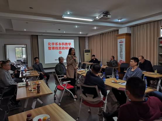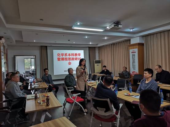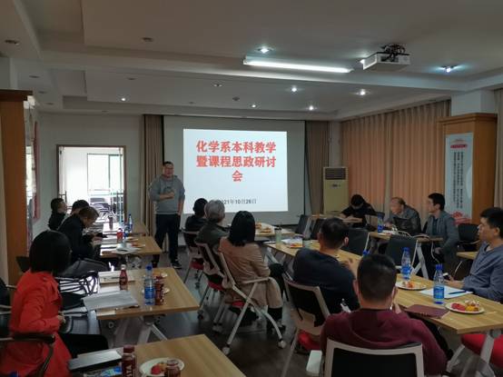 为深入贯彻教育部关于深化本科教育教学改革、全面提高人才培养质量的意见精神,推进化学一流学科建设,落实立德树人的根本任务,提升人才培养质量与教育教学水平,化学系组织召开了本科教学暨课程思政研讨会。研讨会于2021年10月26日15点在学院党员之家进行。党委书记王玉枝、党委副书记刘松、副院长李永军、来院学习交流的新疆师范大学 哔咔官网