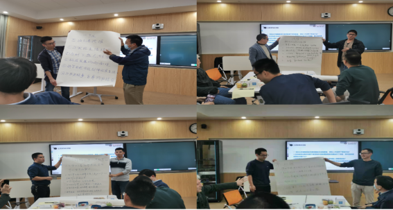 “世界咖啡” 是一种以对话方式获得集体知识和创新成果的简单高效会议形式,它可避免单个教师发言的紧张与参与度不高,进行心无障碍的轻松交流和畅谈,让深藏的思想碰撞出火花,形成集体的智慧。会议第二部分刘强教授大胆引进“世界咖啡”这种参与式活动研讨形式,参会教师以小组为单位,聚焦以下几个主题,围坐咖啡桌旁轻松交流。