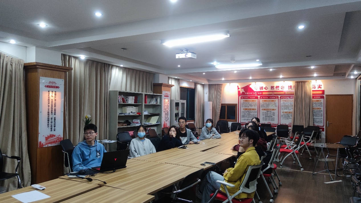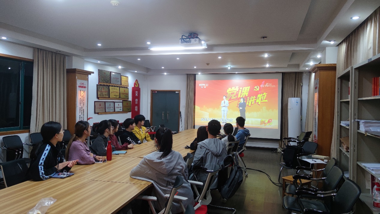 党建服务中心于2022年10月14日晚上21时在党员活动室组织线下集体观看《党课开讲啦》系列节目。会议由徐晓宇老师主持,党建服务中心全体成员参加。