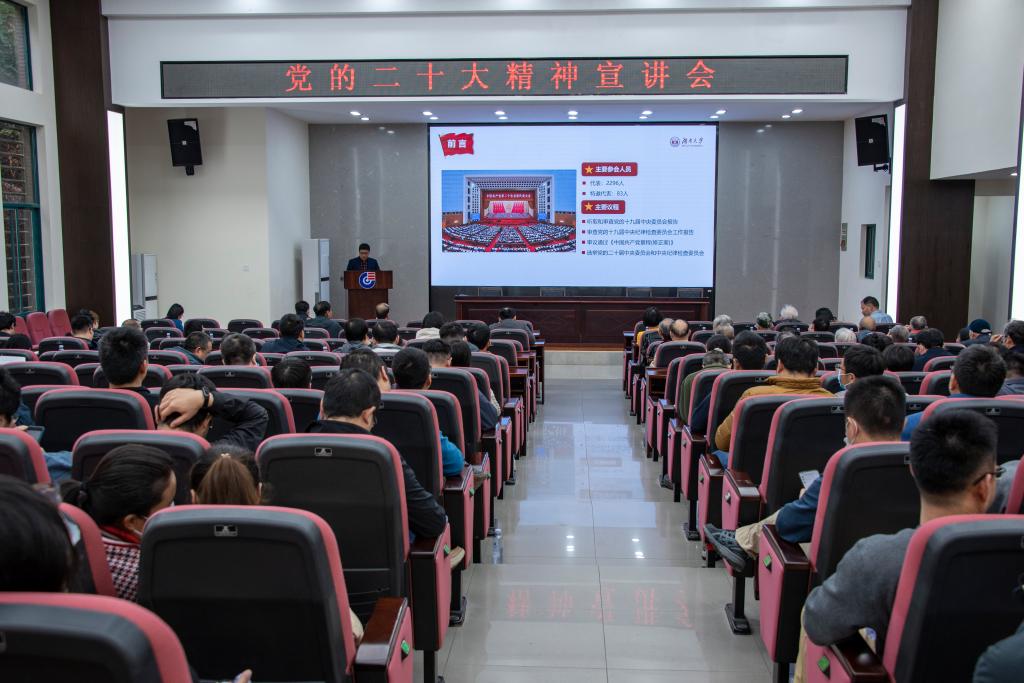 教职工学习党的二十大精神宣讲会在学院报告厅举行,学院党委书记王双印作专题宣讲报告。学院党委副书记楚霞主持。中科院院士俞汝勤、学院退休教师代表、全体教职工约两百余人参加。