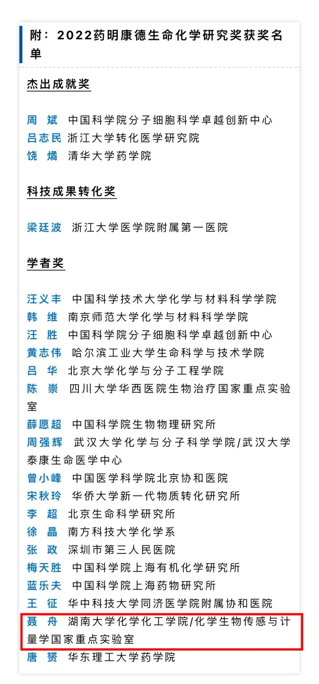今年,中国科学院分子细胞科学卓越创新中心周斌、浙江大学转化医学研究院吕志民、清华大学药学院饶燏3人获颁“杰出成就奖”;浙江大学医学院附属第一医院梁廷波获颁“科技成果转化奖”; 哔咔官网