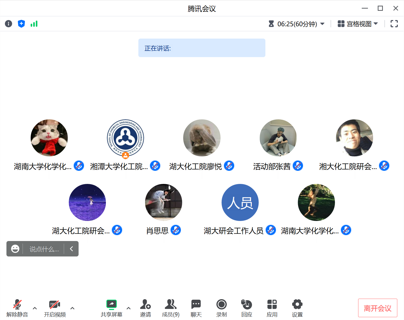 会议伊始,双方执行主席曹哲恒、蒋铃同学作为代表各自介绍了研会建设情况,并简短致辞,表达了对双方研会工作的美好祝愿。紧接着,湘潭大学化工学院研会各部门部长依次发言,汇报特色工作成果。随后, 哔咔官网