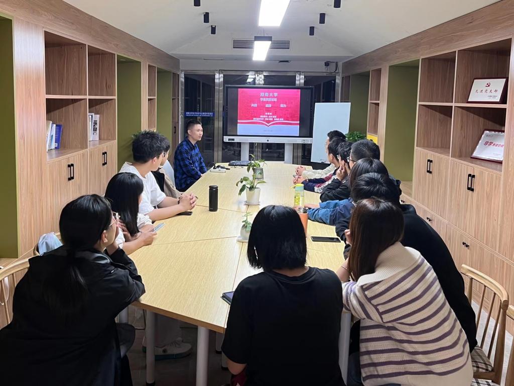2023年10月19日晚19点,学长有话说交流会于逸夫楼南楼307会议室顺利举办,本次活动邀请学院入选2023年“博新计划”的优秀博士后、原2019级博士研究生蒋钢威老师分享其成长故事及科研学习经验,学院26名本、研同学参加了此次活动。