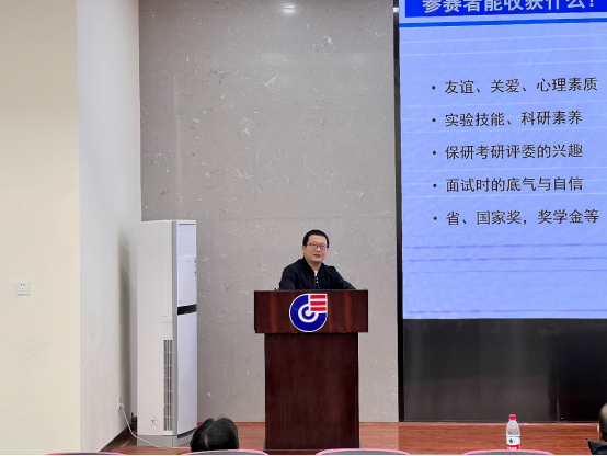 李昆从带队老师的角度详细介绍了化学学科竞赛情况,包括全国大学生化学实验邀请赛与全国大学生化学实验创新设计大赛,也讲述了从这些赛事中学生能获取到哪些能力、如何报名参赛、学院下阶段如何安排这两个赛事等内容,为同学们参加这些赛事提供了重要的信息。