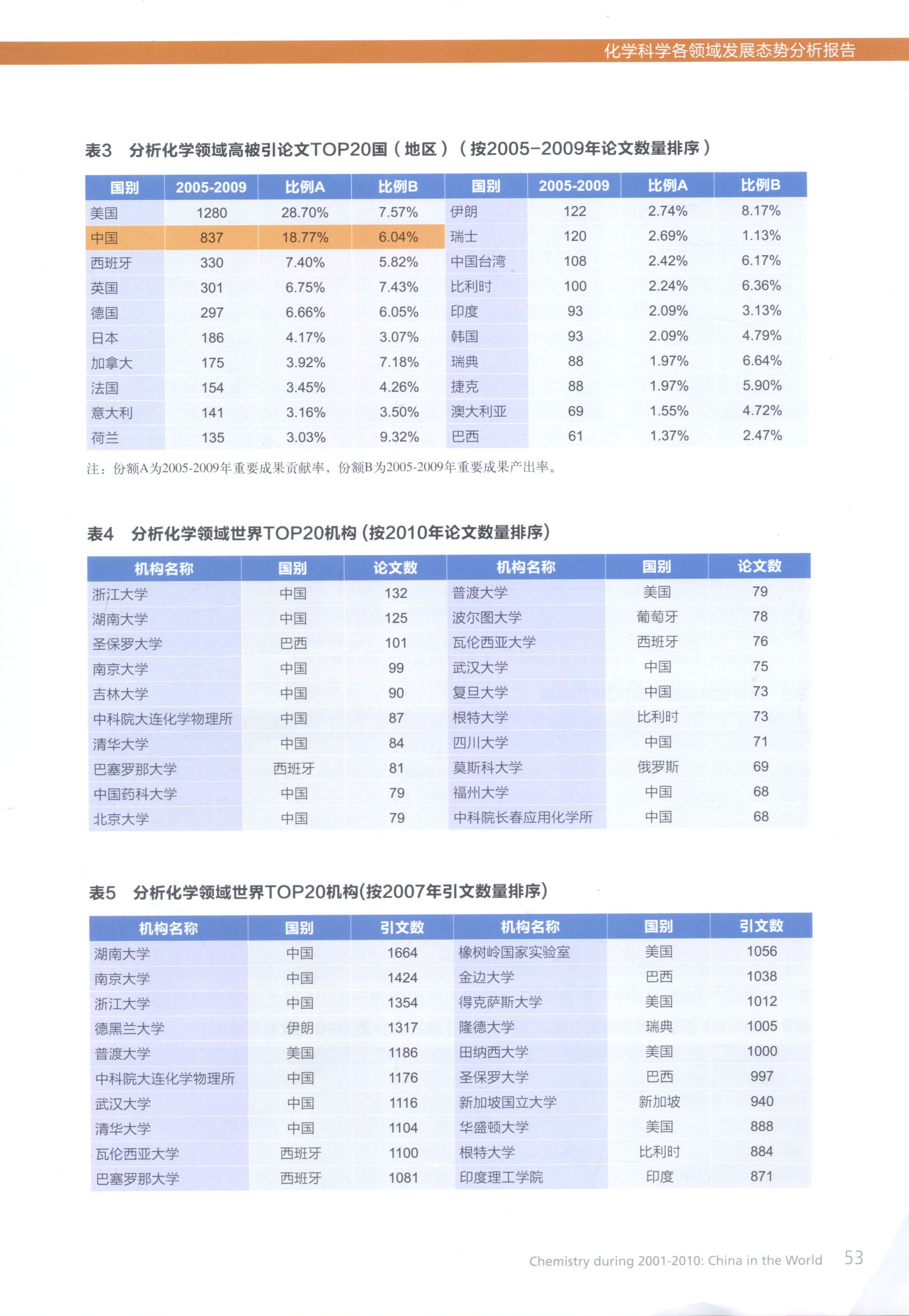 分析化学学科在分析化学领域世界TOP20机构按2010年论文数量排序位居世界第二位,按2007年引文数量排序位居世界首位,在其它几项排名中也分列国际和国内前茅(见以下图表)。这一国家层面上的评估结果充分显示 哔咔官网