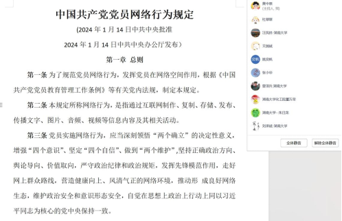 516日下午,应化系党支部召开线上学习会议,主要学习内容为《中国共产党纪律处分条例》和《中国共产党党员网络行为规定》,由支部书记黄中原同志领学,全体党员参加。