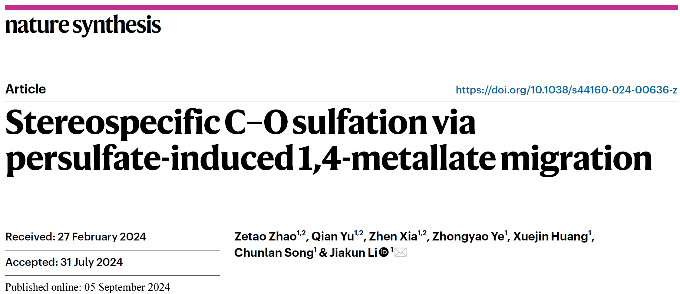 相关研究成果以“Stereospecific C–O sulfation via persulfate-induced 1,4-metallate migration”为题在线发表在《Nature Synthesis》杂志上。 哔咔官网