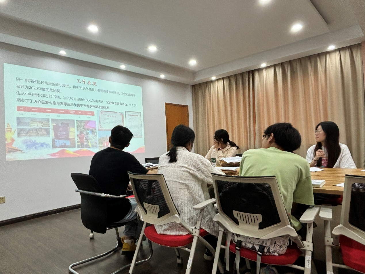 2024-2025学年秋季学期党员发展对象面试答辩会在新化工楼D栋党员活动室顺利举行。本次答辩会共有25名党员发展对象参与,由学院党支部书记组成的评审团队负责评审工作。