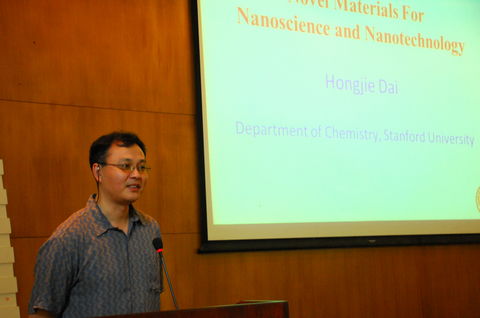 应化学生物传感与计量学国家重点实验室邀请,2012年7月3日上午,斯坦福(Stanford)大学化学系终生教授,J.G.Jackson & C.J.Wood荣誉教授,美国科学与艺术学院院士戴宏杰博士在学院D区报告厅做了名为《Nanomaterials for Nanoscience and Nanotechnology》的学术报告。此次讲学是国家重点实验室“化学生物前沿论坛”系列讲座的第七讲,俞汝勤院士主持。