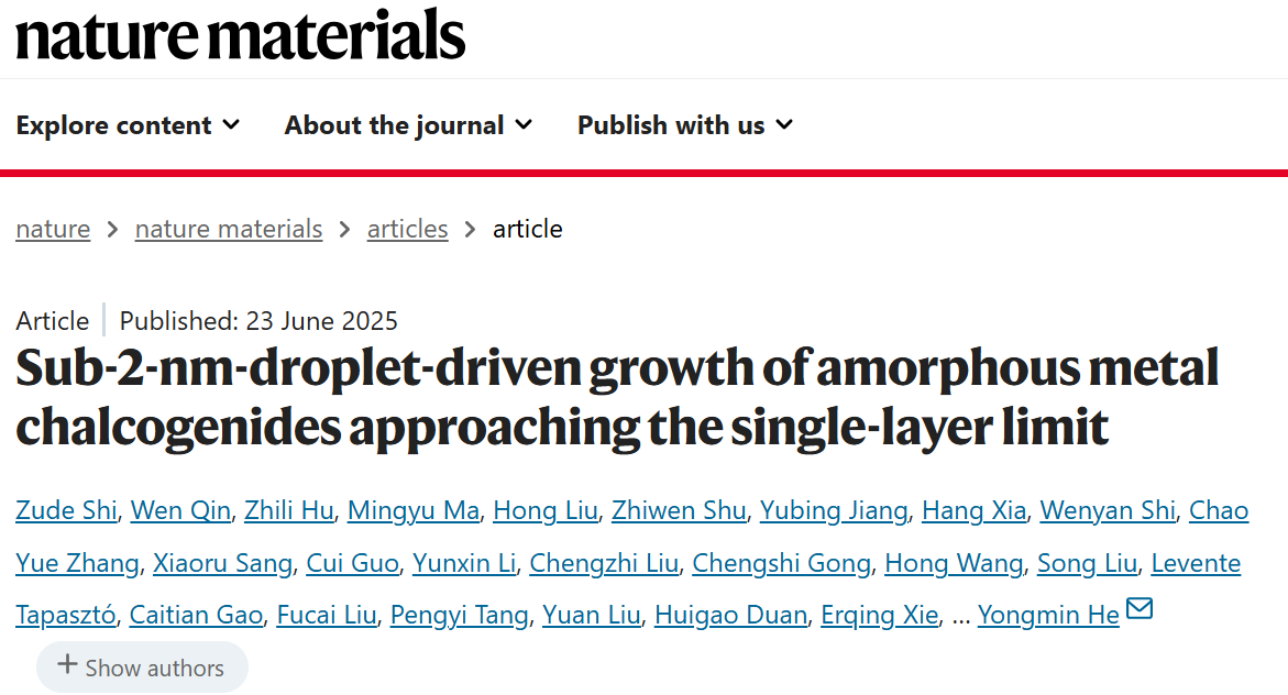 研究成果以“Sub-2-nm-droplet-driven growth of amorphous metal chalcogenides approaching the single-layer limit”为题发表在《Nature Materials》上。 哔咔官网