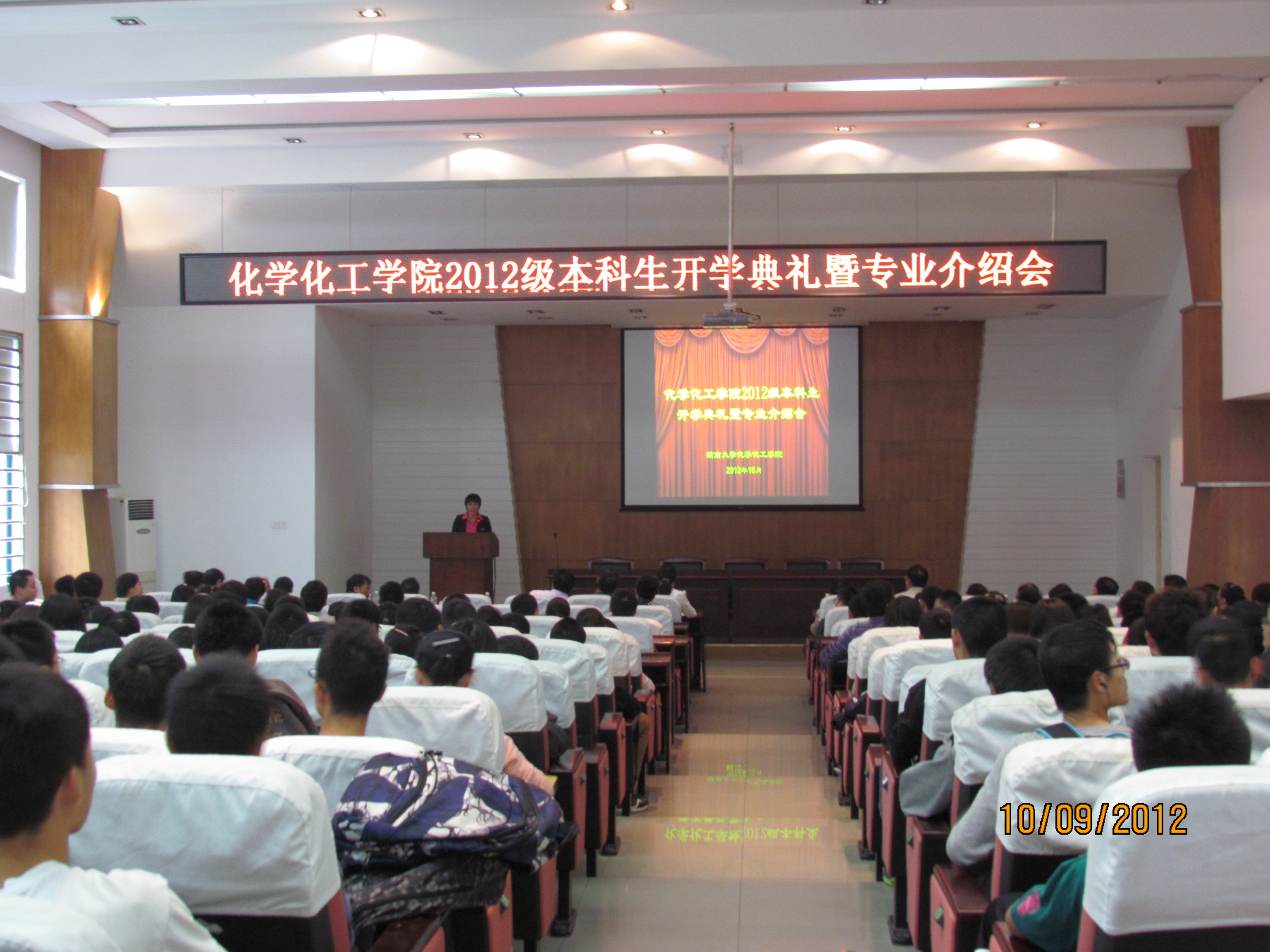 2012级新生开学典礼暨专业介绍会在学院领导的关心指导和学工办老师的认真组织开展中,圆满结束,会议现场气氛和谐,相信新一代化工人定能续写化工院新的辉煌。