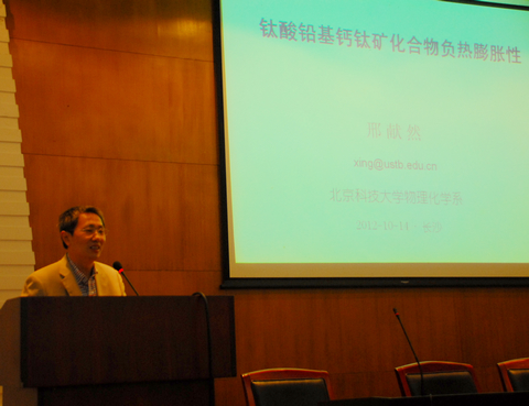 应国家重点实验室邀请,2012年10月14日,教育部****特聘教授,国家****科学基金获得者,北京科技大学物理化学系邢献然教授来 哔咔官网 讲学,作了题为“铅基负热膨胀化合物的合成和性能研究”的学术报告,受到了广大师生的热烈欢迎,俞汝勤院士主持学术报告。