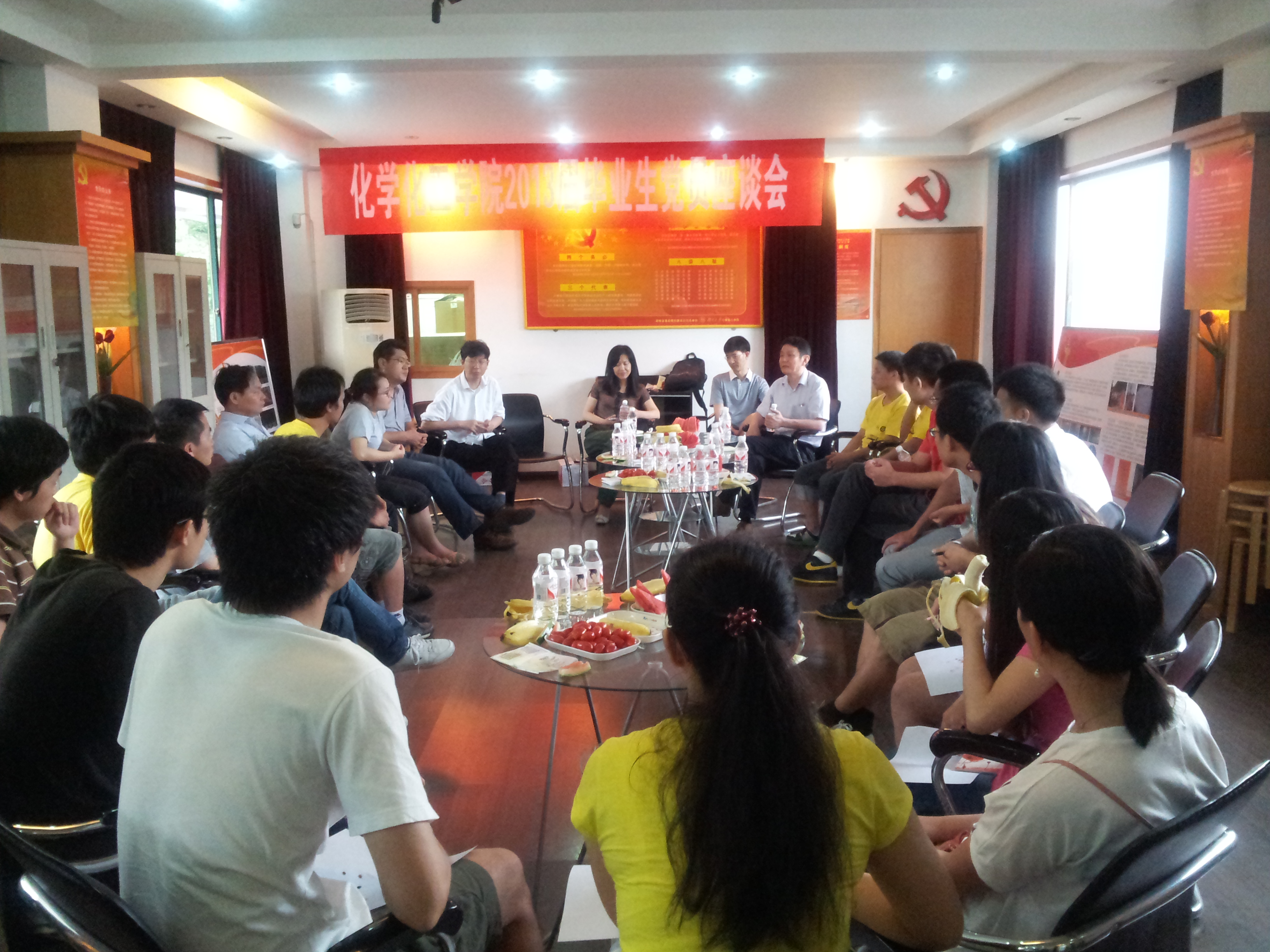 2013年6月6日下午4:30-6:00,化工院10名本科毕业生党员代表、8名硕士毕业生党员代表与学院领导在院办四楼党员活动室进行了座谈。