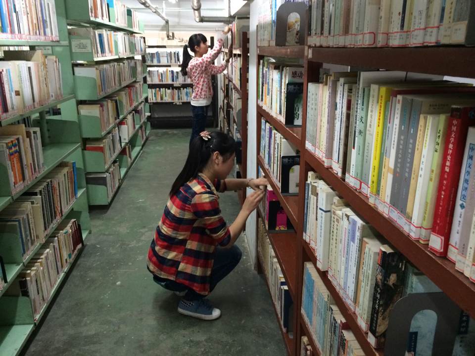 下午一点,同学们准时到达图书馆,来到图书馆六楼,在图书管理员的带领下和班长的分配下,把15个人分成三组,一组用拖把拖地,一组整理书架上的书本,一组清扫书架上的灰尘。
