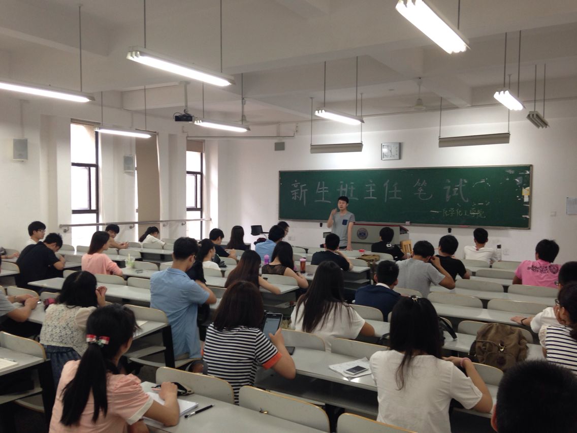 在综合楼215教室举行了新生班主任笔试考试。莅临此次考试的老师有,12级辅导员陈晓辉老师,10级兼14级辅导员刘世明老师。参加此次考试的2012级同学一共有52位,同学们面对此次笔试显得信心满满。